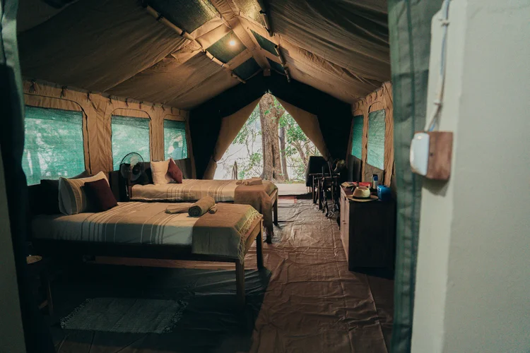 Our safari camps are designed for both comfort and authenticity, with 6 different camps, each comfortably hosting 4–6 guests at a time. You’ll stay in clean, well-maintained accommodations with hot showers, daily laundry service, and everything you need to relax after a day in the bush.